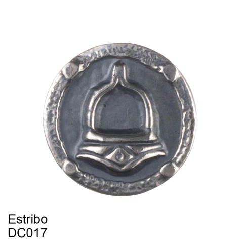 Dije entre 15 y 20mm de diámetro, confeccionado en alpaca y baño de plata, con imágenes en relieve.