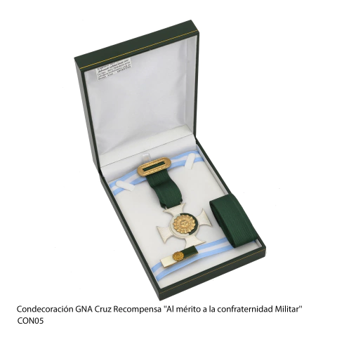 Distinción perteneciente a la Gendarmería Nacional Argentina. Con cruz recompensa “Al Mérito a la Confraternidad Militar”